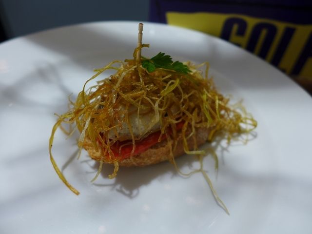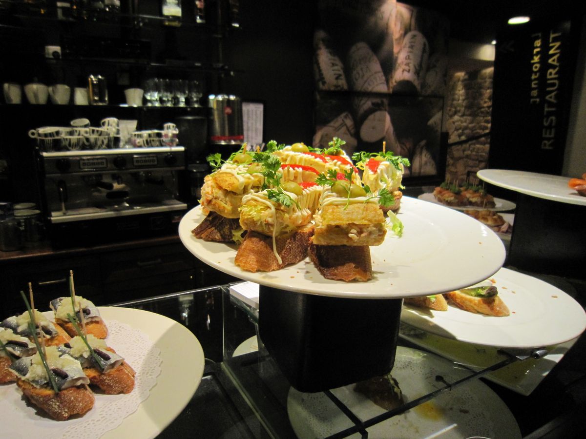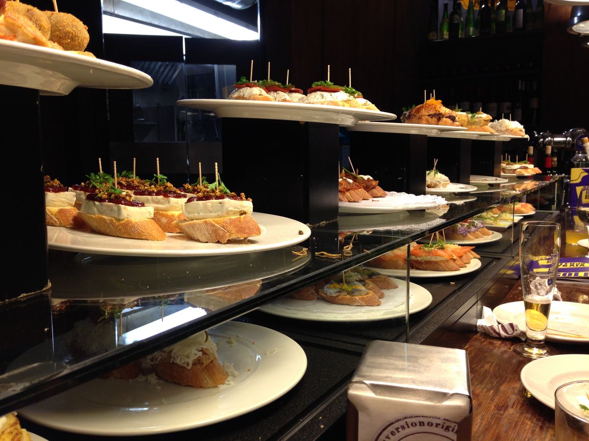 ピンチョスを食べました。カウンターにある好みのピンチョスを自分で選らんで食べられ、人気のあるお店のようでとてもにぎわっていました。