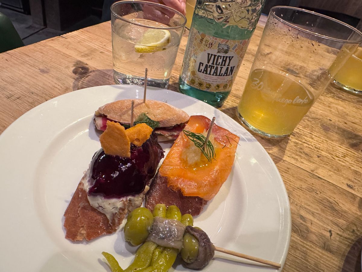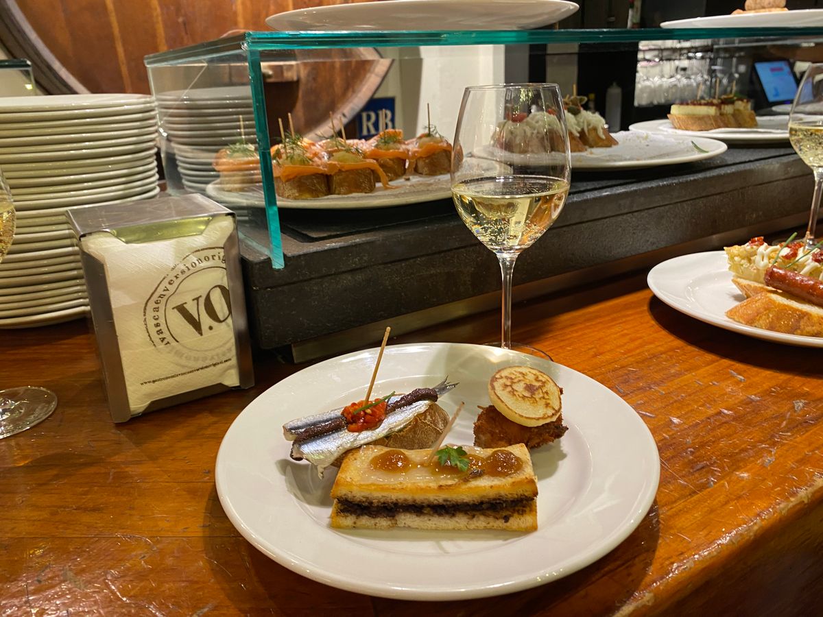 2件目のバルでは大皿料理のピンチョスをみんなでシェアし、シャンパンを二杯飲んでギブアップ。