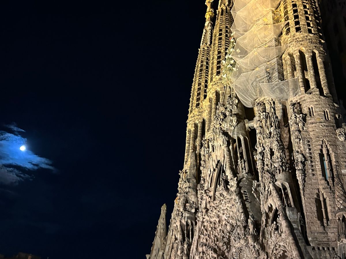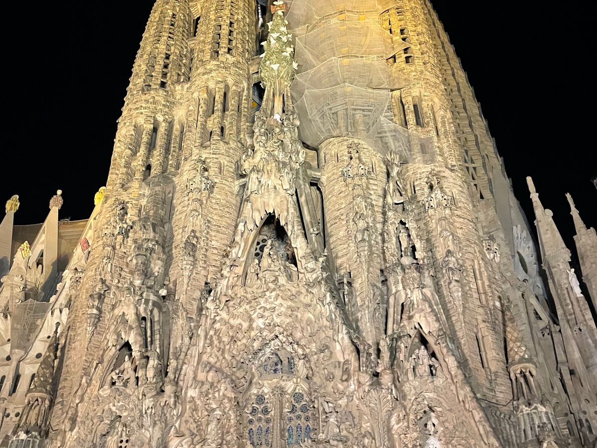 また、夜のサグラダ・ファミリアはライトアップがされていてとても綺麗でした。私は翌日の午前中にサグラダ・ファミリアのツアーに参加したのですが、このツアーで概要を教えてもらっていたので、より深く理解することができました。