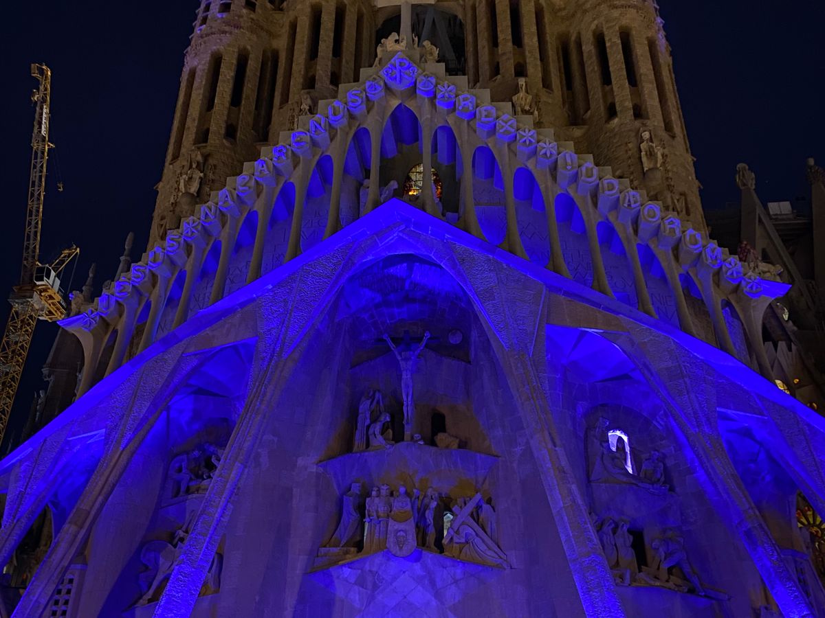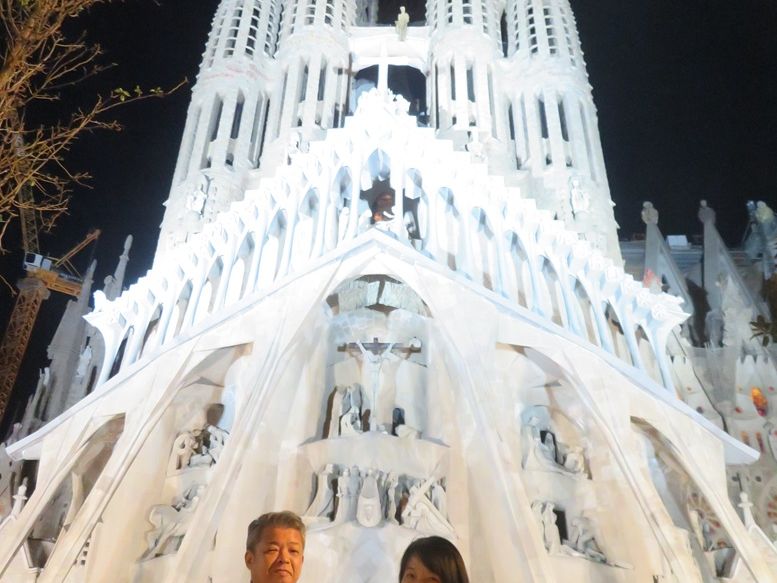 その後、夜のサグラダ・ファミリアに案内していただきました。