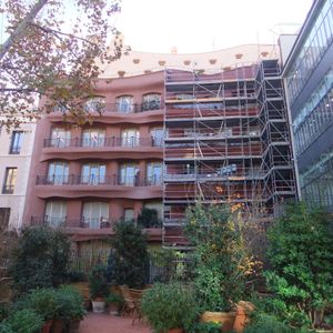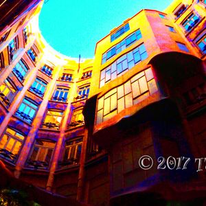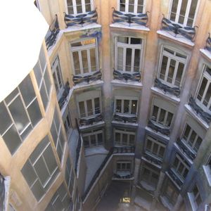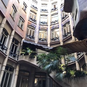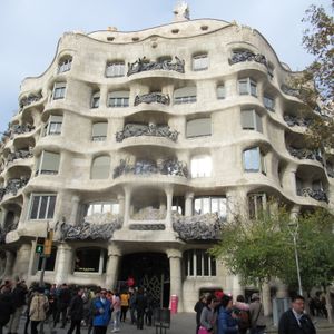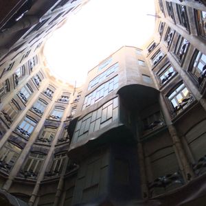 前日のサグラダファミリアとは打って変わって、曲線をうまく見せつけるそんな建物です。特に中庭のつくりに興味を持ちました。唯一残念だったのが、裏面が工事中で足場が組み立てられていたことでした。