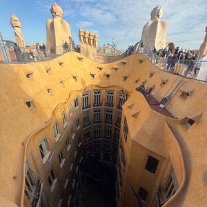 朝の早いタイミングでカサミラを訪問しました。ヒトも少なく、ゆっくり観覧できました。カラフルさには欠けますが、独特のデザインは素晴らしいですね。屋上テラスは面白い趣向になっていますね。この後、歩いて、カサ・バトリョに向かいました。(徒歩10分くらいでしょうか?)1時間半くらいみておけば、十分に観光できます