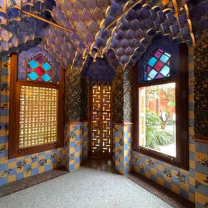 カサ・ビセンスは、アントニ・ガウディが手掛けた最初の主要な住宅作品であり、彼を建築家として世に知らしめた重要な建物です。鮮やかな緑と白のタイルを市松模様に多用した外観は、当時の流行であったムデハル様式やイスラム建築の影響を強く感じさせ、後の有機的な作風とは異なる魅力を持っています。 カサ・ミラやカサ・バトリョと比較すると比較的混雑しにくい傾向にありますが、ガウディ建築の初期作品として人気が高まっているため、特にゴールデンウィークや年末年始は混雑します。スムーズな入場のためには事前予約がおすすめです。