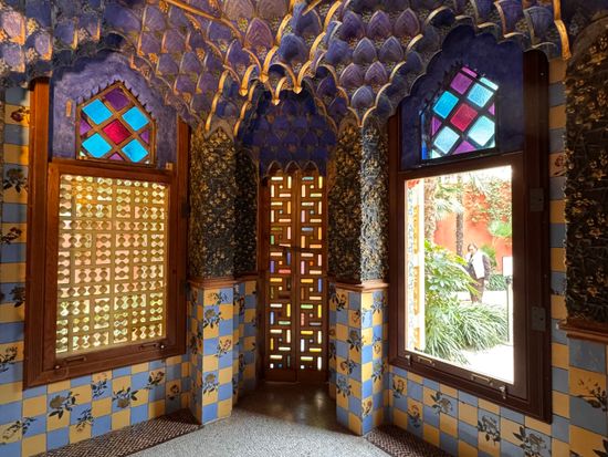 ガウディの他の建築物とは違い、混雑はしてないため、自分たちのペースで見学でき、美しいタイルや天井をみたり、気持ちの良いテラスでゆっくりしたりとても良い時間が過ごせました。