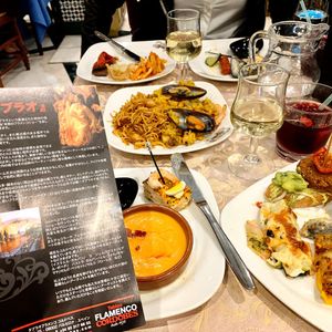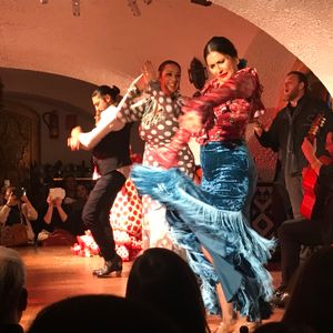 最初に案内されたレストランでのビュッフェの種類の多さに圧倒されました。ズラリと並ぶタパスやピンチョスを夢中になって食べました。1人旅では夜にバルやレストランに行くのは勇気がいりますが、ショーを見る目的で予約したレストランでいろいろな種類のスペイン料理が食べられ大満足です。フラメンコショーは料理付きのプランの人から先に案内されるので、目の前のとてもよい席に座ることができました。本場スペインの方の踊りや歌、ギターを目の前で見て音を聞き、生涯忘れない素晴らしい体験ができました。