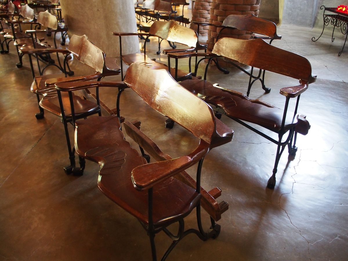 ガウディ設計の教会の椅子にも実際に触るだけでなく座ってきました。こんなことできるのは、たぶんここだけだと思います。