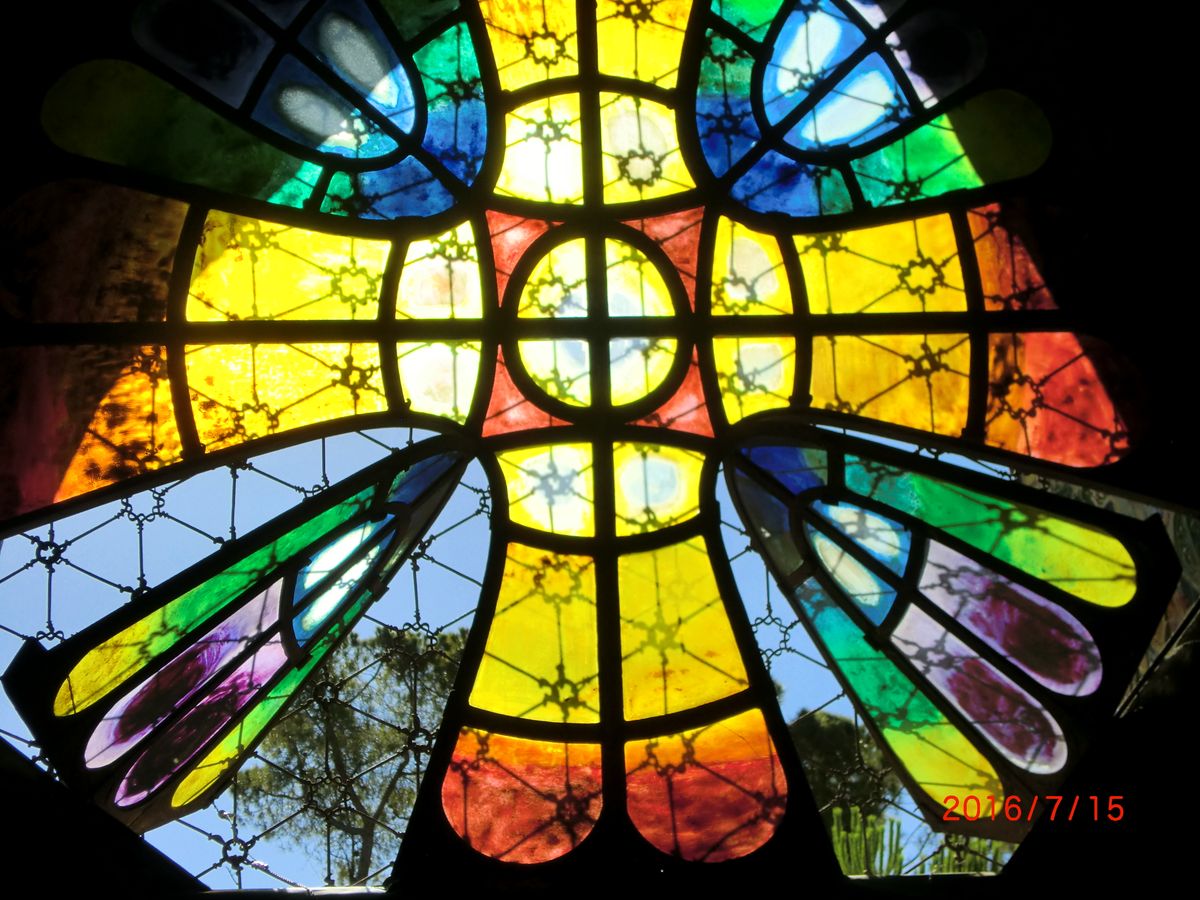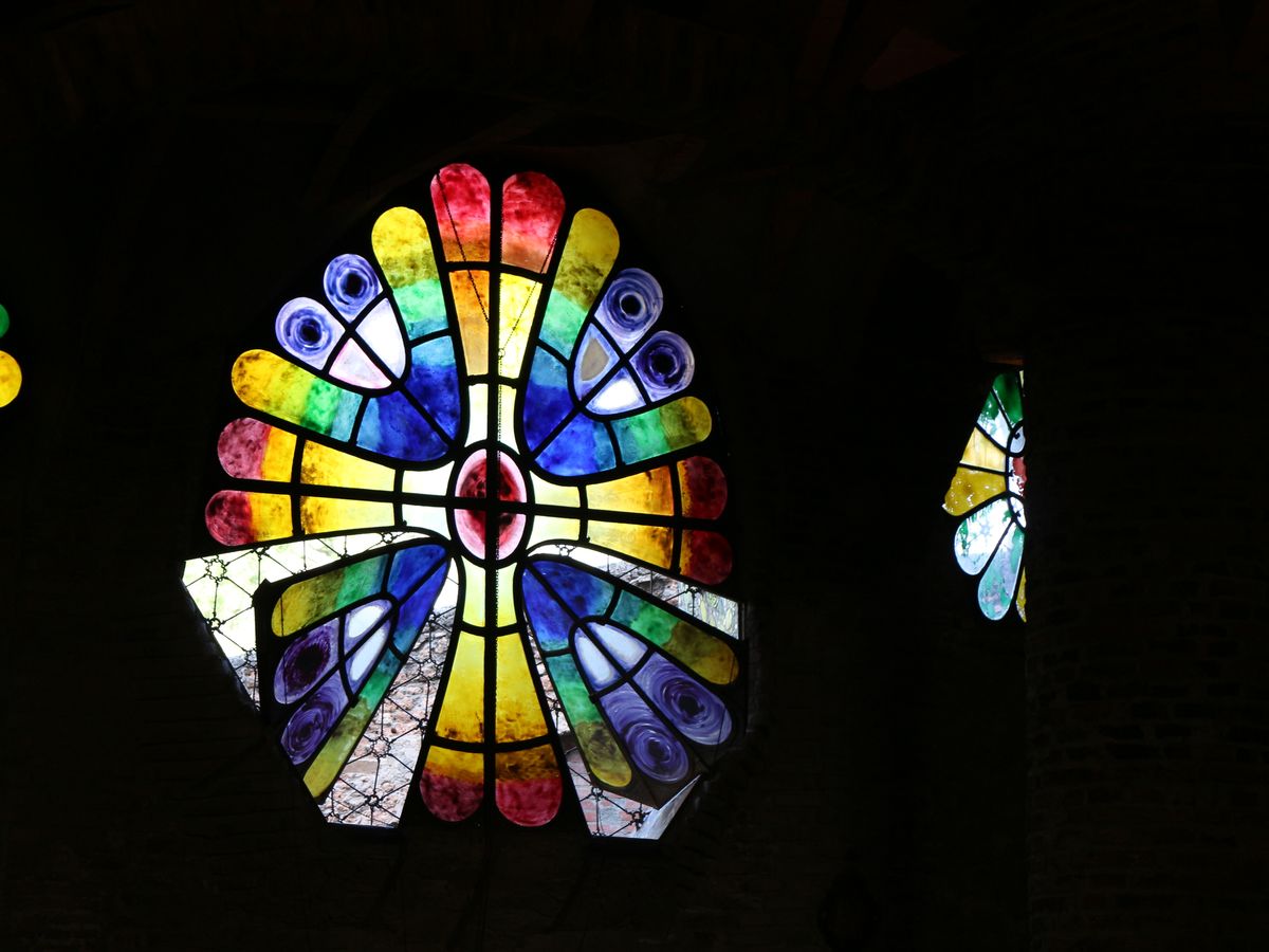 時間がタイトではあるものの、コロニア・グエルの中、またガウディ的なステンドグラスのサーキュレーションシステム等の説明がある。