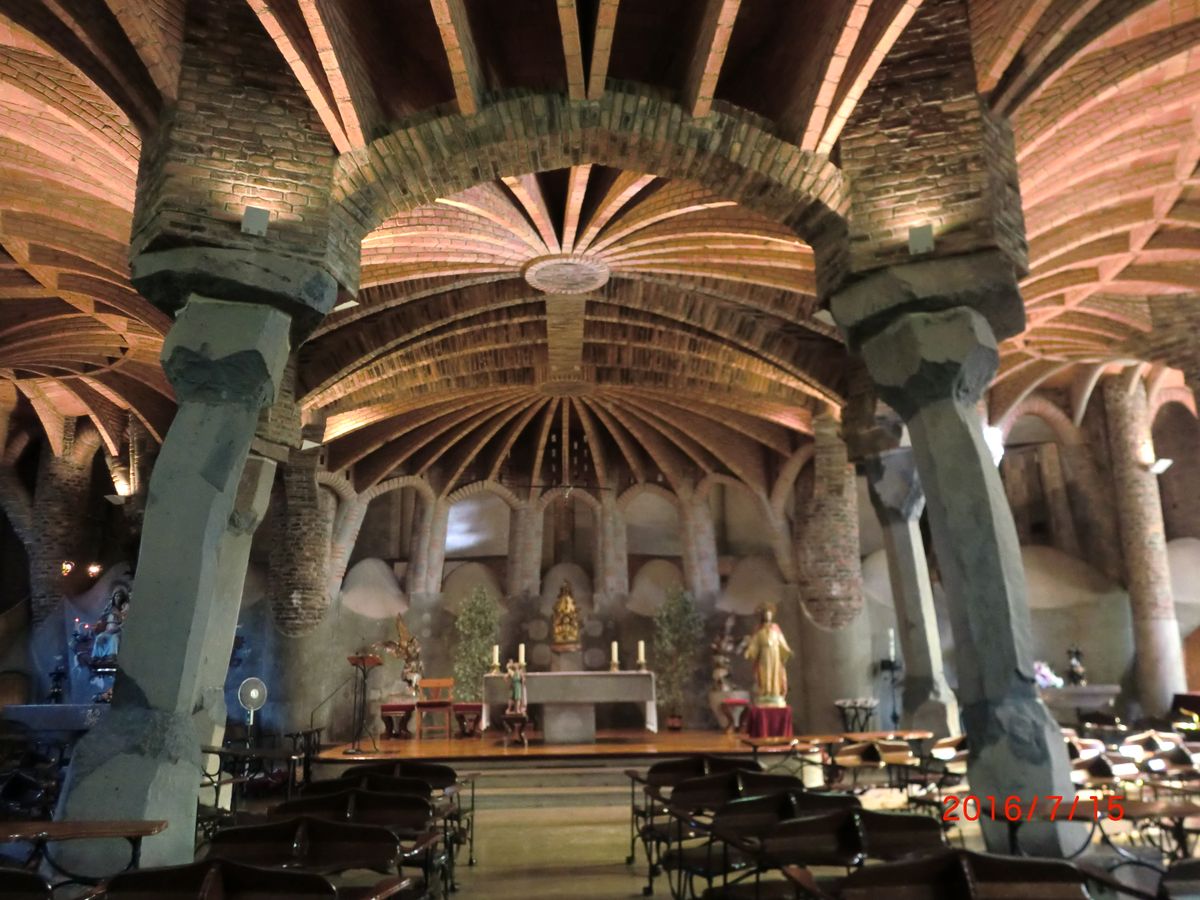 コロニアグエルは2年前にも訪れましたが、以前は上がることが出来なかった場所(祭壇の後ろの2階)に入れるようになっていて、また違った視点で見ることが出来ました。