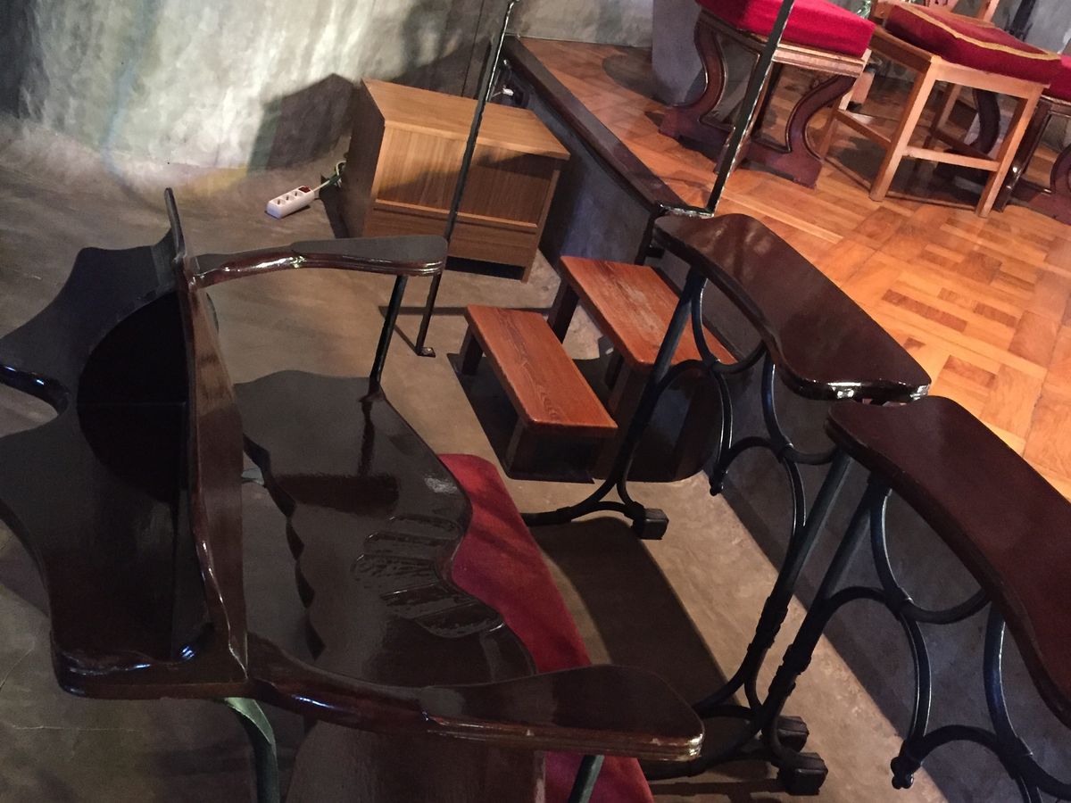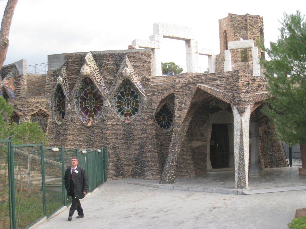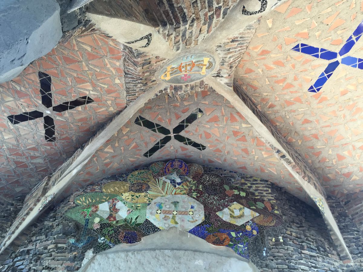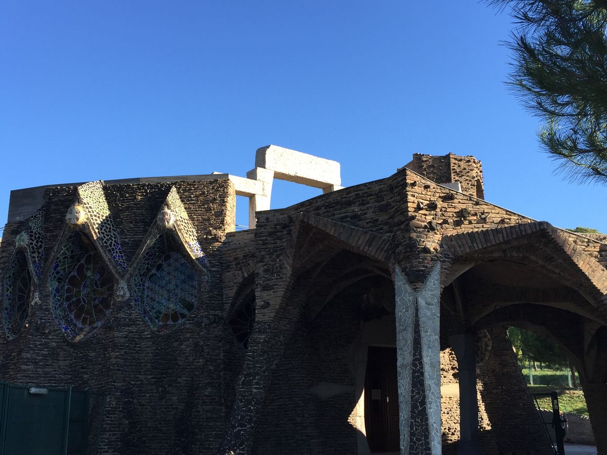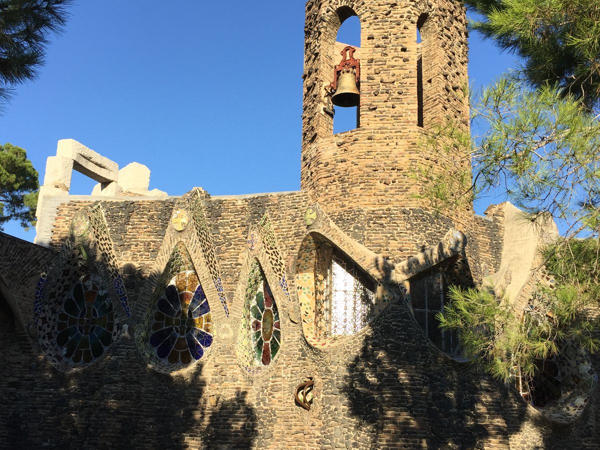 コロニア・グエル教会では、ステンドグラスにちょうど日が差し美しかったです。ステンドグラスは、開閉式になっているのですが、ある形になっており、よく考えられているデザインでした。