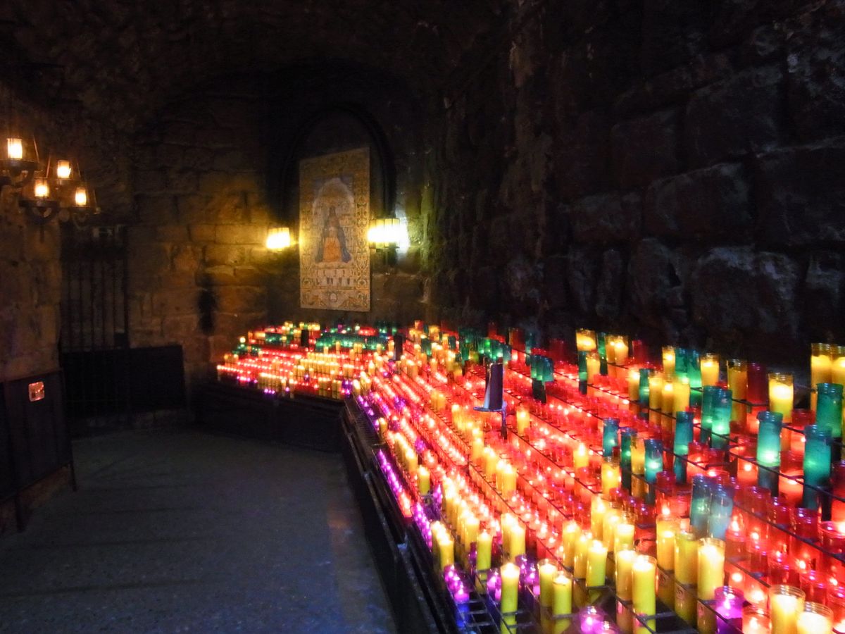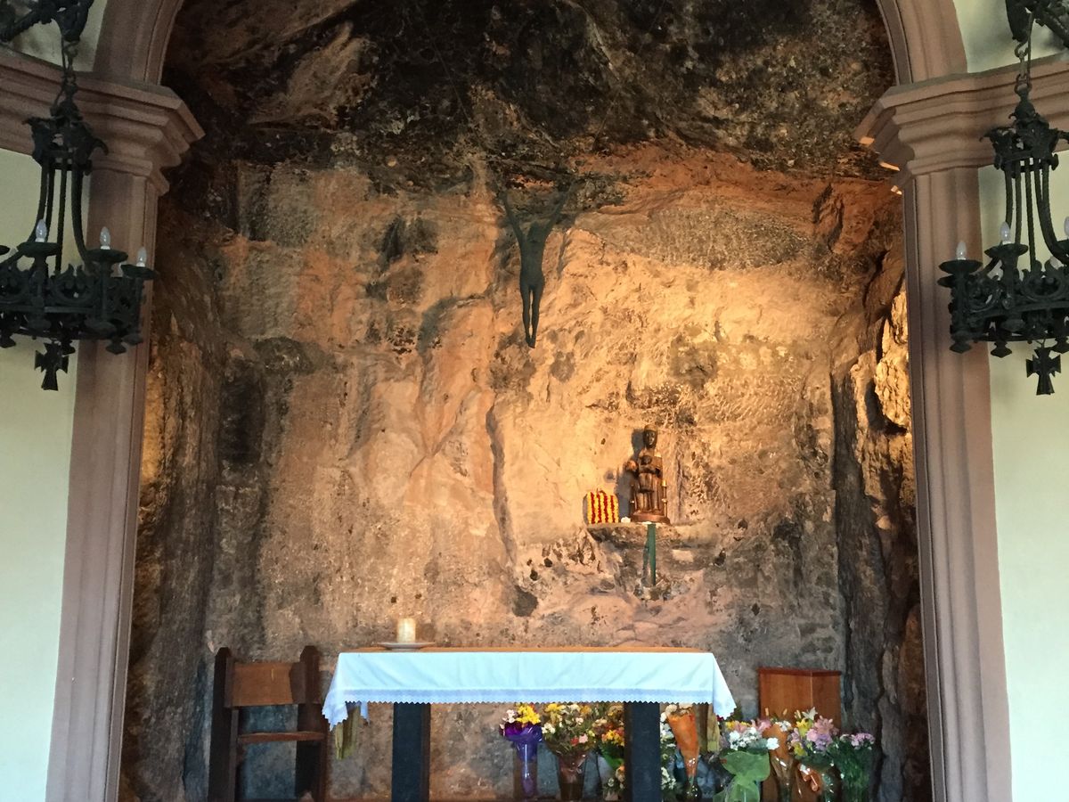 その日は残念ながら滞在時間中は大聖堂の中に入れなかったため、急遽ケーブルカーで山頂へ。かつて隠者たちが使っていたというひなびた礼拝堂や、岩場のくぼみにある住居あとなどを見学。大聖堂周辺とはまた違った趣もあり、時間があるならぜひケーブルカーに乗って山頂まで行くこともおすすめします。この日は見ることができませんでしたが、晴れている日はピレネー山脈も見られるそうです。