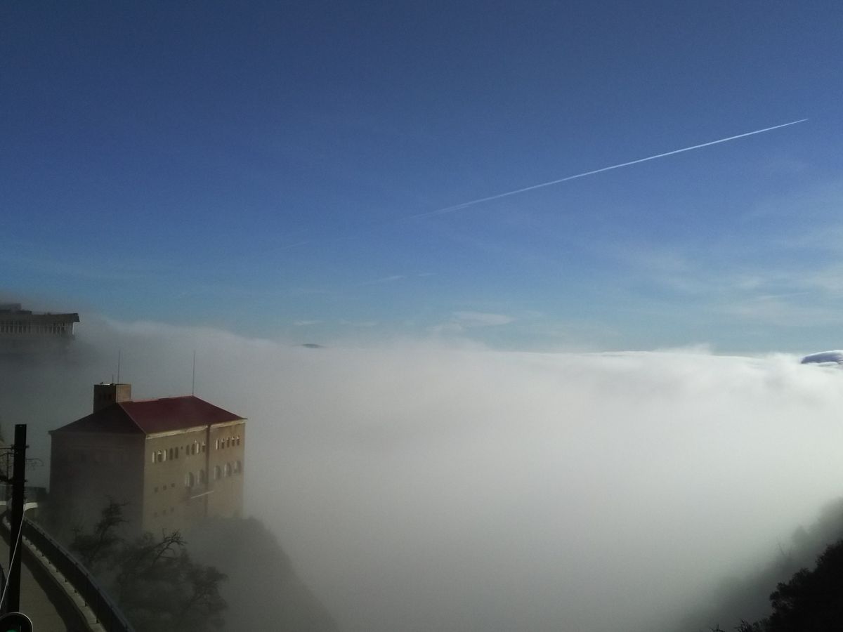 終点に着くと、この日はたまたま平地が曇っていたからか、街は望めませんでしたが、そのかわりに一面に雲海が! まさに天空の城、といいますか、天空の修道院といった感じで、静謐さと荘厳さを感じられて別世界にいるようでした。ガイドさんもこのような景色は初めてとのことで、ラッキーだったようです。日本ではなかなか見られない、スケールの大きい雲海を見られただけでも大満足でした。