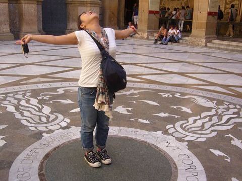 しっかりとマリア様と対面した後、パワースポットだと言われる大聖堂前の中庭は空いていて全身にパワーを溜め込む事ができました!!