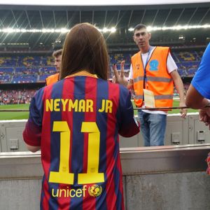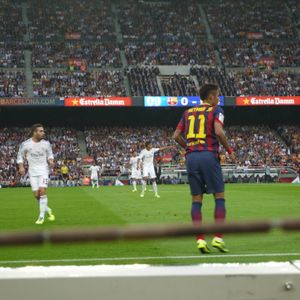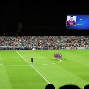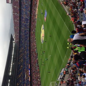 カテゴリー1プレミアムをお願いし、1階席ほぼ中央、後方の席でした。2階席が視界の1/3ほどを占めますが、ピッチは完璧に見えて、試合に集中できるとても良い席でした。サイドにいたメッシとネイマールが前半後半でうまく近くで観ることができましたよ!試合が始まるまでの間階段を降りていけばスタジアムすべてを見渡せて記念撮影も出来ます。早めに行けば、まだお客さんの座っていないスタンドに書いてあるFC BARCELONAの文字(正面と反対側でした)や、ゴール裏のナイキのマークもしっかり見えます。