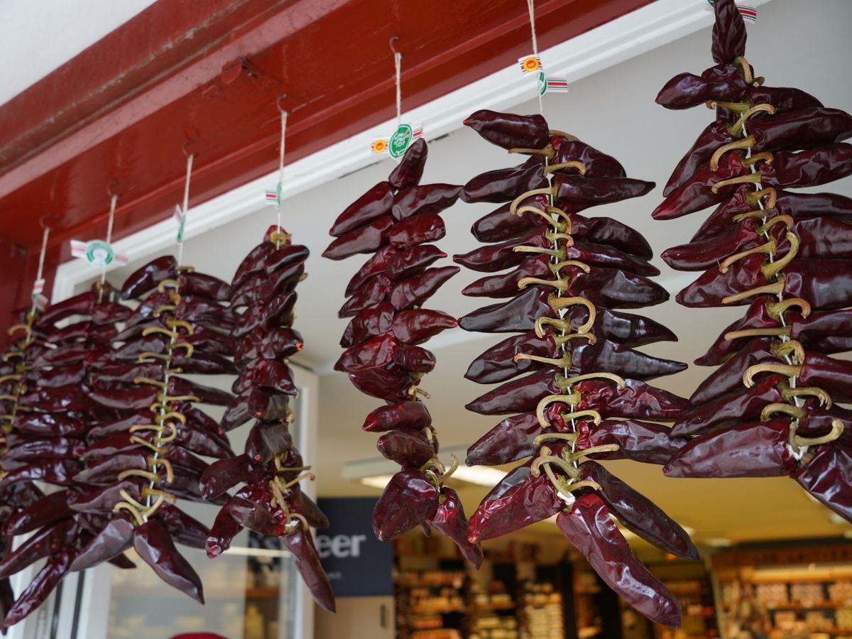 白壁に吊された赤唐辛子(ピーマン?)が可愛らしい、ほんとに小さな町、エスペレット。お昼ご飯で食べた、バスクの伝統料理アショアが美味しかった。