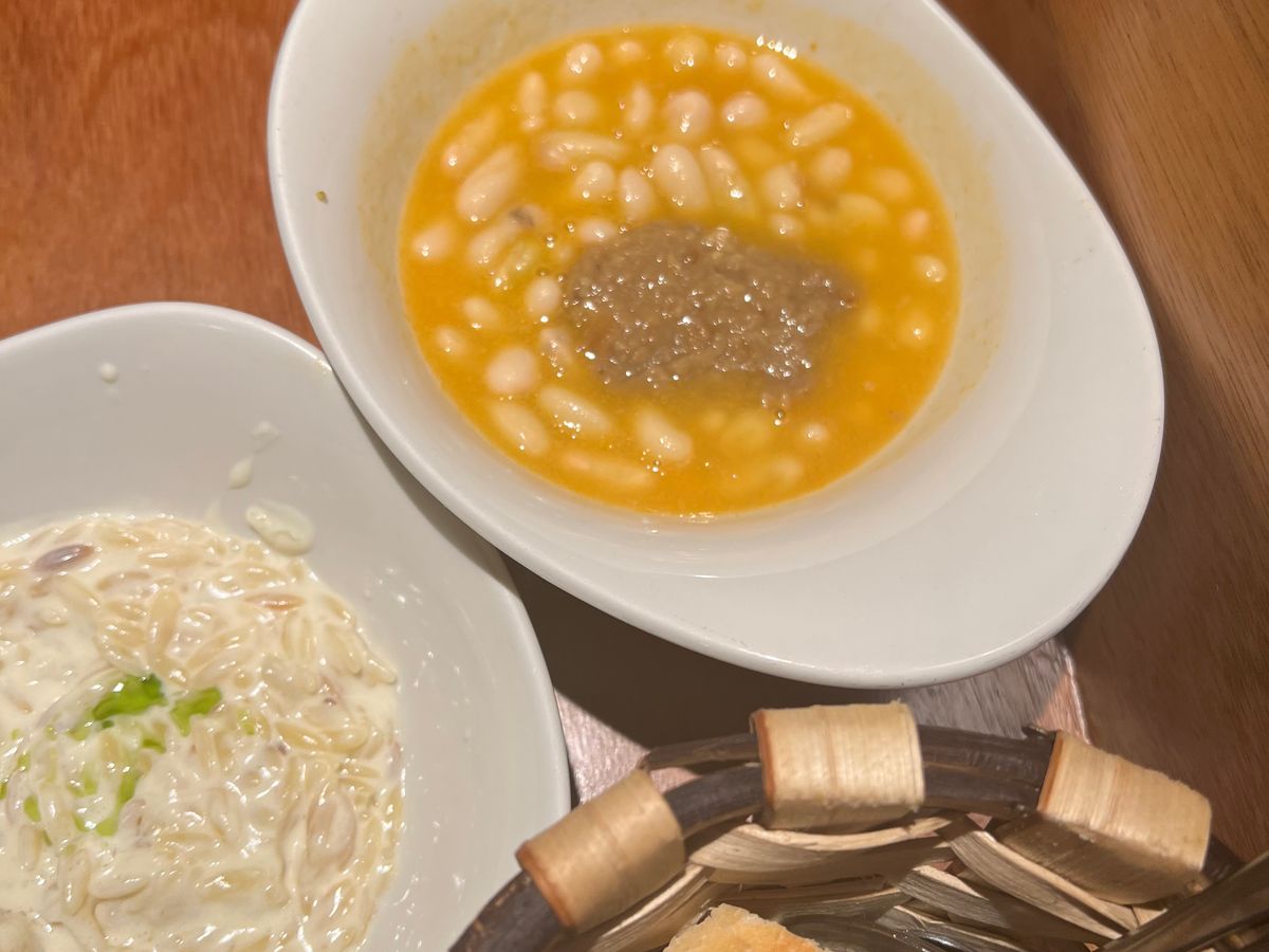 リゾットなどもあり最後はデザートで締めることも可能なので普通のディナーの食事量でした。