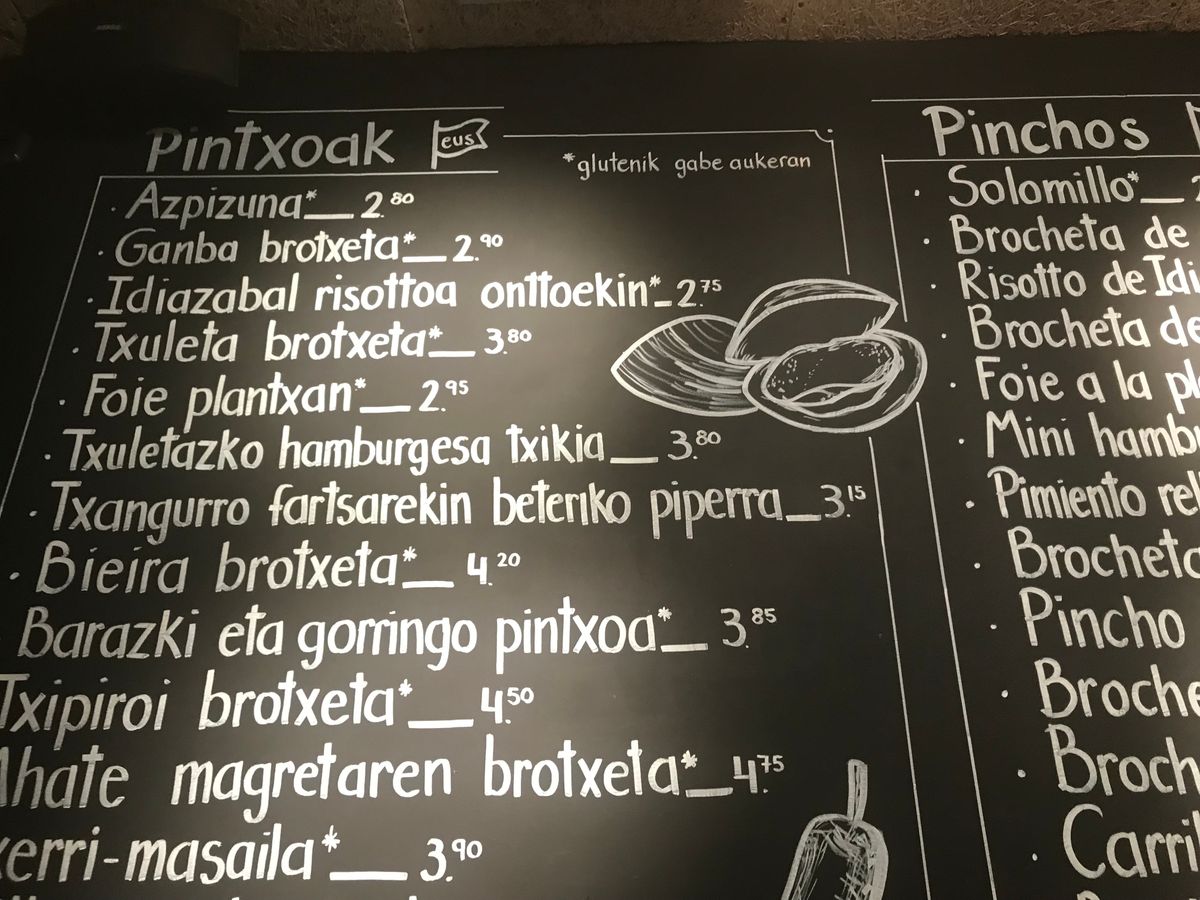 サンセバスチャン訪問前に、ビルバオで初のバル巡りにチャレンジし、結構英語と日本語で何とかなるものだと若干の自信を持っていましたが、所詮は指差しオーダーの域を出ず、黒板を見て温かい料理をオーダーするのは難度が高いと痛感していました。