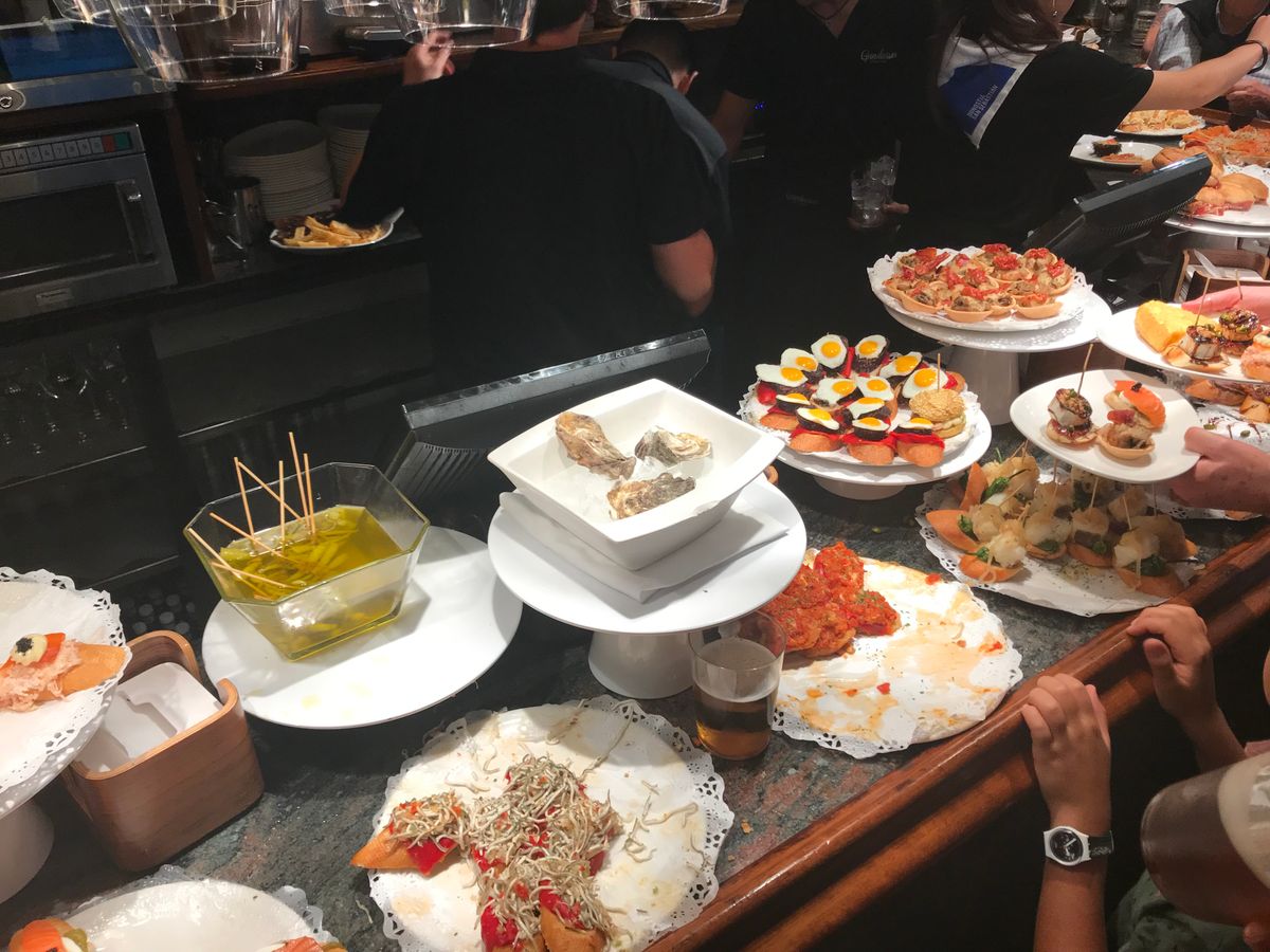 待ち合わせ場所に着くとガイドさんが素敵な笑顔で迎えてくださいました!ツアーでは行きたいと思って前もってリサーチしていたお店に加えて、おすすめのところも案内してくださいました。またてっきり2人でピンチョ6品と飲み物3杯かと思っていましたが、1人あたりでした!2人で合計12品。お腹いっぱいになって最後食べきれないほどの量でした。