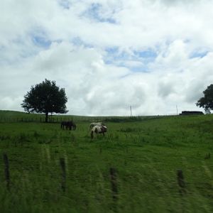 鉄道の旅は、素晴らしい景色で、山頂は雲の中でしたが、途中は海や動物、バスクの家、崖など、良く見えました。