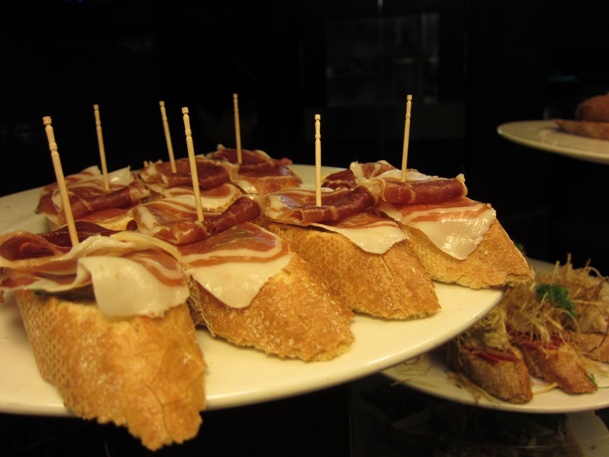 一軒目、ハモン・イベリコ(あまり美味しくなくて残念)とパン・コントマテ等を頂きました。イベリコが残念でしたので、翌日、市場で切り立てのイベリコの生ハムを食べました。大満足でした。