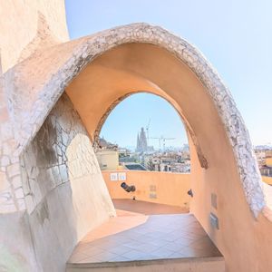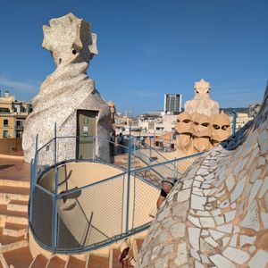 日本語オーディオで予備知識がなくても楽しめます。直線を一切使わず、曲線のみで建築されたことに驚かされました。特に波打つ屋上は歩きづらいですが、稀有な景色は必見です。アーチ越しに見えるサグラダファミリアも是非味わってください。