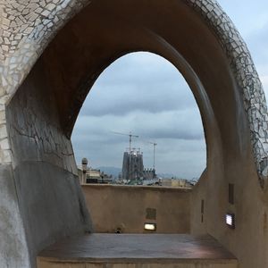 他の施設が時間指定なのに比べて、こちらは時間指定じゃなくて助かりました。時間が遅かったからかそれほど混んではいませんでしたが、チケットが手元にあって、すんなり入れました。最初に屋上に上がり、順に下に降りていくように見学ルートになっています。屋上からはサグラダ・ファミリアも遠くに見え、やっと観光気分に。