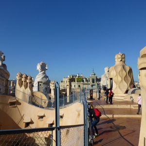 バルセロナについて3日目に、グエル邸、グエル公園、そしてカサミラをまわりました。朝まず、ホテル(ホテルガウディ)の向かい側にある、グエル邸を2時間かけてみて、その後にグエル公園へ、ファストパスを持っていなかった為、入口で、予約し、2時間ぐらい外をうろうろしてから、中に入り見て、その後バスでグエル別邸の前を通って、カサミラに行きました。もう6時を過ぎていたため、すいており、ファストパスがなくても問題なくはいれる混雑でした。カサミラの屋上からのサクラダファミリアがとても良いです。カサミラの内部は集合住宅で広い事もあり、ガウディらしさという意味では、別の日に行った、カサバドル、あるいはグエル邸の方がガウディのこだわりが感じられました。
