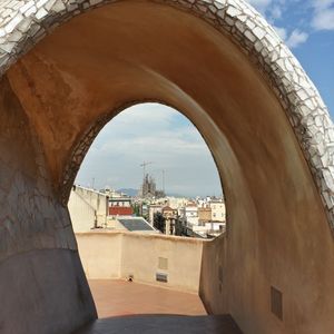 チケット購入にはかなりの人が並んでいましたが、優先入場できました。屋上のアーチのところではサグラダファミリアが見えます。とてもきれいでした。