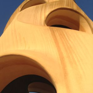 屋上にあがれば、青いスペインの空と波うつ屋上、煙突、装飾で、なんとも不思議な空間が待っていますよ(*^^*)
