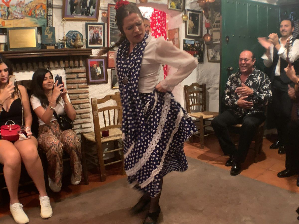ガイドさんがとても素敵な方でした。スペイン人の旦那様がいるということで、街を知り尽くしていて、なかなか行けないような裏道を案内してくれました。大通りと違って落ち着いており、素敵なお店があったり、犬が散歩していたり、いい気分になりました。そして1軒目のタパスへ。ピンチョスを2つ選んでワインで乾杯!とても美味しくて雰囲気も最高のお店でした。2軒目はトマトを塗って焼いたパンと生ハム、ビールで乾杯。3軒目はイワシの酢漬けなどとワイン。3軒とも雰囲気が違って楽しめました。お店のチョイスが良かったです。最後はフラメンコ、最前列でサングリアを飲みながらの鑑賞。踊り子さんの汗が飛んできそうなほどの臨場感でした。ガイドさんには次の日に行くレストランなどのアドバイスももらい、とてもお世話になりました。美しくて本当に素敵な方でした。母、娘、私の3世代の旅行での素敵な充実した夜を過ごせました。