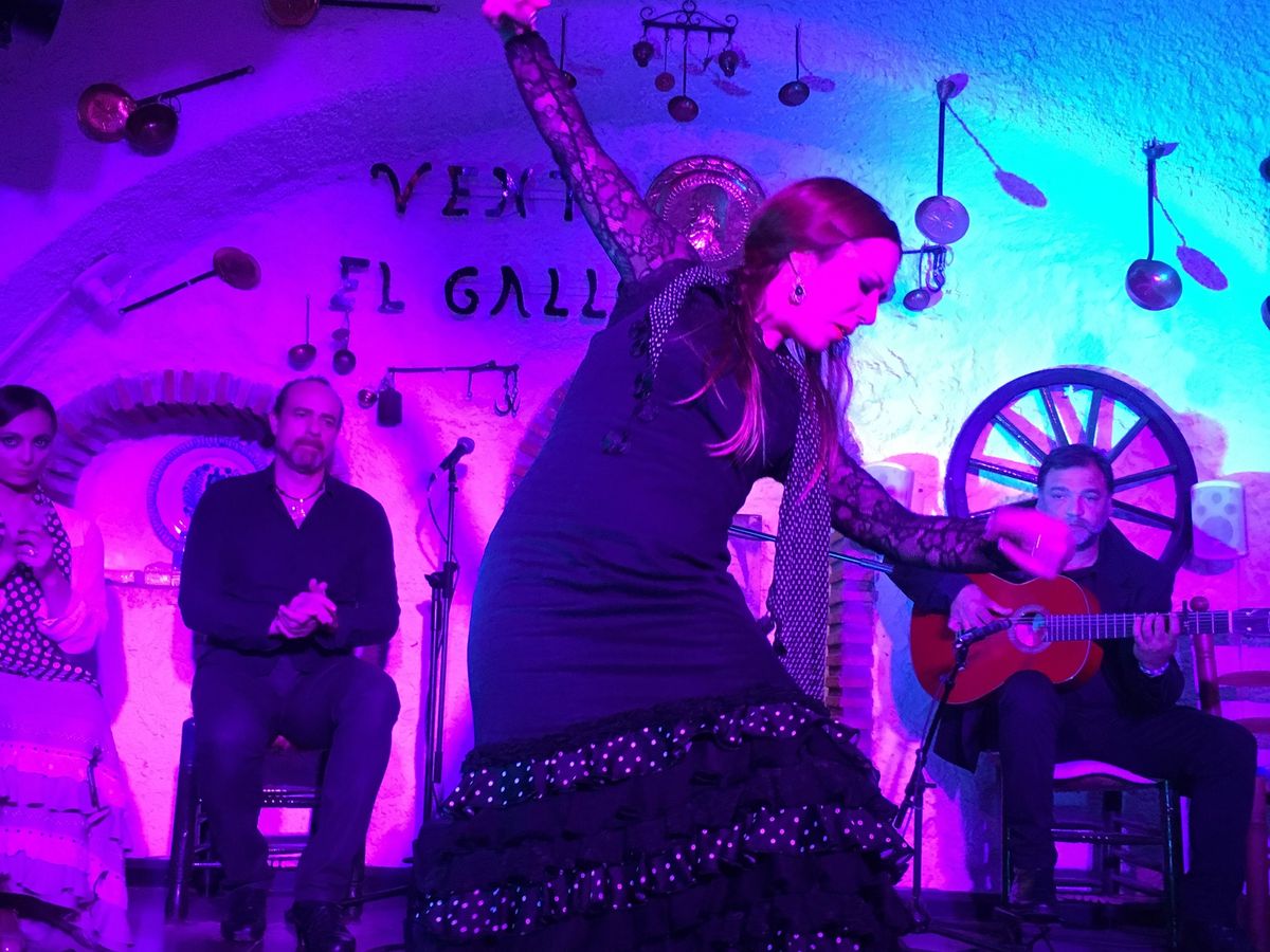 食後のフラメンコも小さなハコで迫力のステージでした。アドヴァイス通り早めに会場に着いたおかげで最前列に着席もできてよく見えました。なんとなく、「フラメンコはこいういもので、地域によってこういう特徴があって、今日はこういうスタイルをお見せしまーす。」みたいな解説があるのかと思いきや、いきなりステージが始まって驚きました。演者さんたちがアイコンタクトで即興的にステージを作り上げているライブ感がしました。時間も長すぎず短すぎず、会場のトイレも綺麗で良かったです。(観光客が多いので、トイレで「あなたどこから来たの?私は〜」みたいな話でちょっと盛り上がりました。)