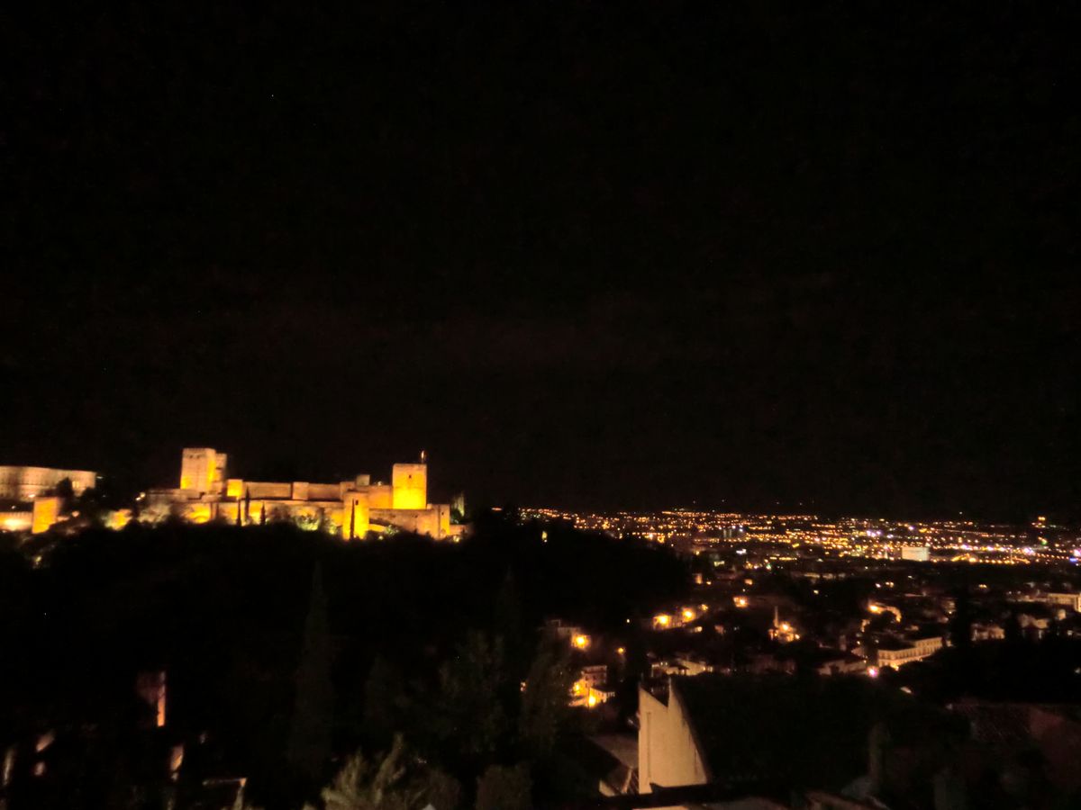 帰路、想定通りにアルバイシンの絶景スポット(サンニコラス広場)に連れて行ってもらった。途中、ガイドさんから歴史的な説明もあり、夜間に徒歩では行けない場所なのでので、この「おまけ」がまた大変良かった。
