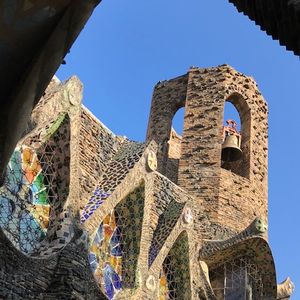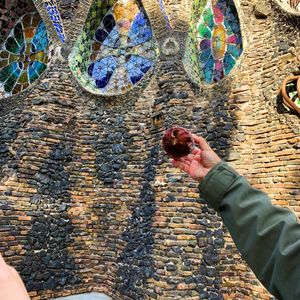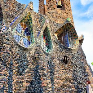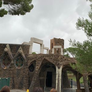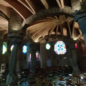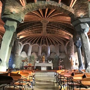 オープンとともに、教会へ。今後、混みあうであろう建物内部から先に見学しました。サグラダファミリアの仕事を受ける前にガウディがやっていた仕事で、途中でサグラダファミリアの仕事に専念することにしたため、1階のみ(崖のようになっている土地を上手く利用しているので、教会内部は地階のように感じる)しかなく、見るところも少ないですが、細部までガウディの拘ったデザインがあり、見ごたえはありました。教会に置いているベンチもガウディの設計で元からある古い方のベンチは座り心地が良かったです。最後に外側を見て歩いて駅に戻りました。