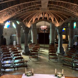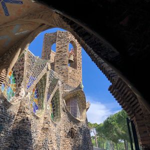 まずは、「コロニア・グエル教会」へ。最寄り駅「コロニア・グエル」から徒歩10分くらいのところにあり、まだオープン(オープンは午前10時)まで20分程度あることから、周辺の街をガイドさんと散歩しました。ガウディの弟子が設計したお家や小さい街の中心地にあるカフェや映画館などを見て回りました。綺麗な建物も多く、周辺も散策出来て良かったです。