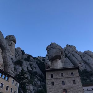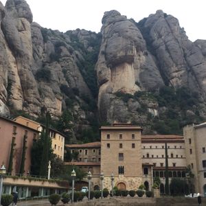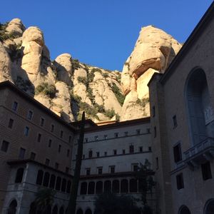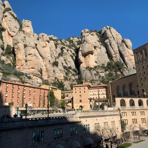 サクラダファミリアの発想のベースのなったモンセラットの岩山の情景と現代アートも取り入れデザインしている修道院の建築物。