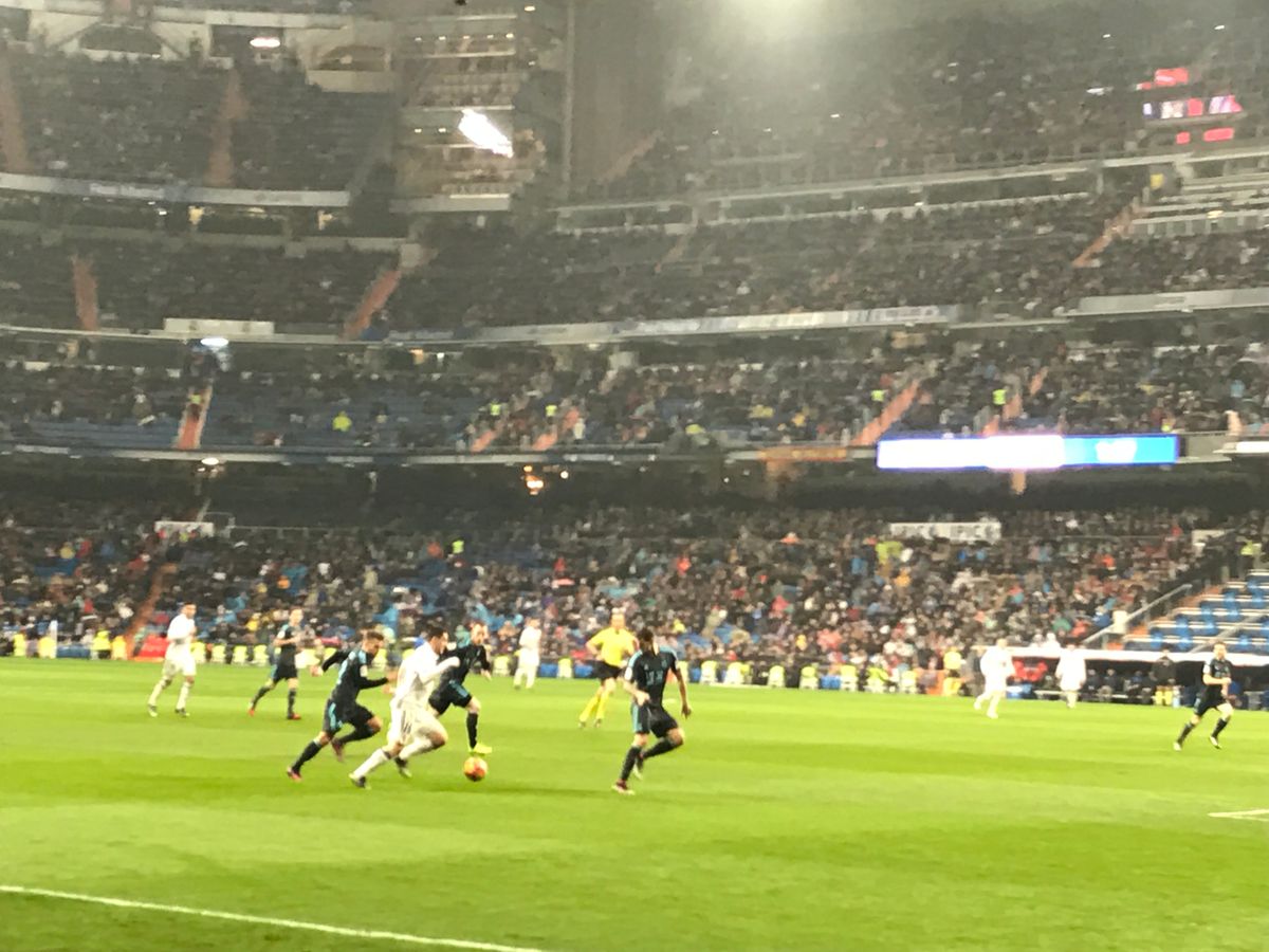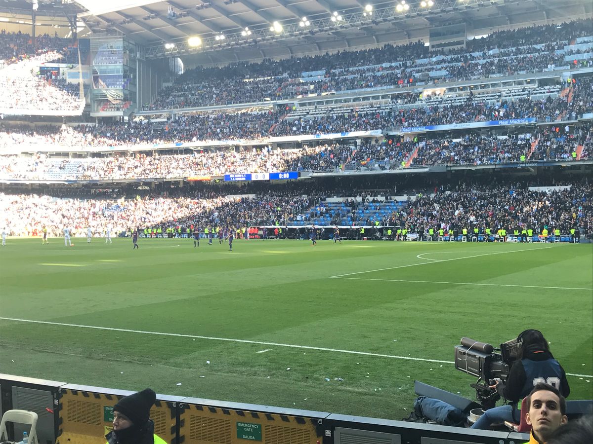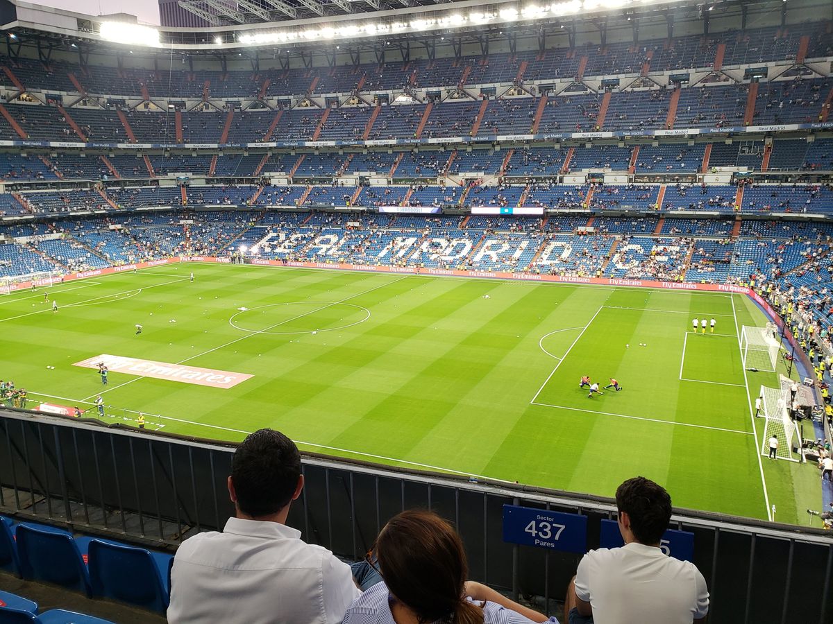 サッカーを今まで観戦したことがなく、せっかくならとカテゴリー1の席を予約しました。当日チケットを見せると、スタッフの方に「こっちにきて」と案内されて行った場所はまさかのVIPルーム!試合前に軽食(ドリンク飲み放題、生ハムやタパスなどたくさん)が食べれる場所で、中にはレアルマドリードの優勝カップがたくさん飾られていて興奮して写真をたくさん撮りました。席は前から3列目ぐらいで、試合中選手がとても近くまできていてすごかったです。試合はレアルマドリードが5-1で勝利!いい席でみれてとても満足でした。
