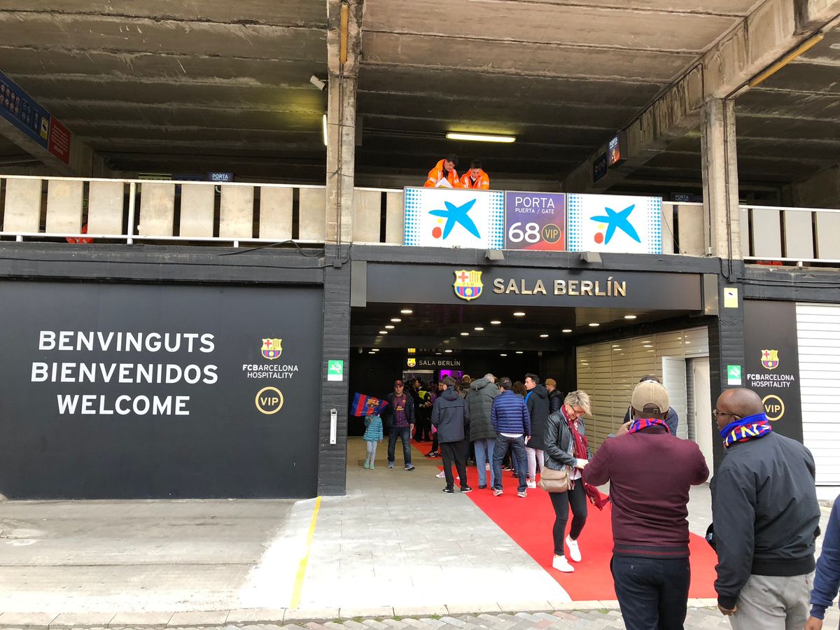 ワクワクしながらカンプノウへ行き、まずはVIP席専用のパーティルームへ!大学生の僕たちは体験したことのないような豪華な食事とお酒でさらに気分上々!