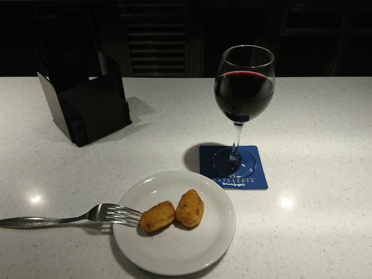 11時30分に、美術館で一旦解散したので、 デパート「エル・コルテ・イングレス」のグラスワイン・ドリンク券をもらっていたので、徒歩でデパートに行き、 7Fのイートインで、赤ワインとコロッケを頂きました。ただ、共にぱっとしない味でしたので、時間がない人は、パスされても良いかもです。
