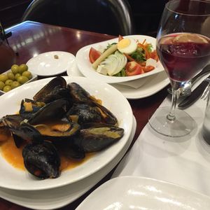 店内は落ち着いた雰囲気で高級感があります。しばらくすると年配の男性が笑顔でオーダーを聞きにきました。選択式のメニューを渡され数種類ある中から前菜はサラダとムール貝を選び、メインは魚とパエリヤをオーダーしました。