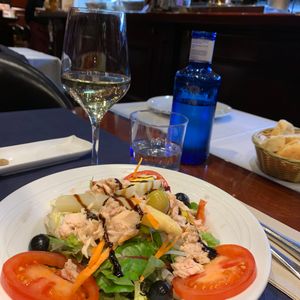 お店に入ってhola! Tengo reserva.と言いつつバウチャーを広げるとすぐに予約されたメニュー表を持ってきてくれ、スムーズに注文できました。4種類のパエリヤから好きなものを選び、サラダかスープかを選び、あとは白ワインを頼みました、円で支払いましたが1杯で1000円しなかったのでリーズナブルにいただけました。サラダを選びましたが店員さんがオリーブオイルと塩もお好みでかけたら美味しいとアレンジしてくれたり、味どう?みたいなことを気にかけてくれたりレストランらしい気遣いをしてもらえました✨