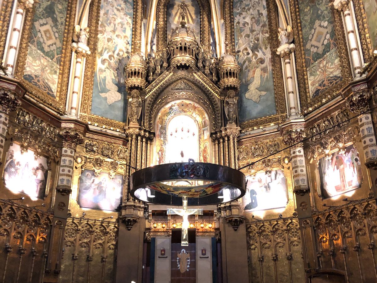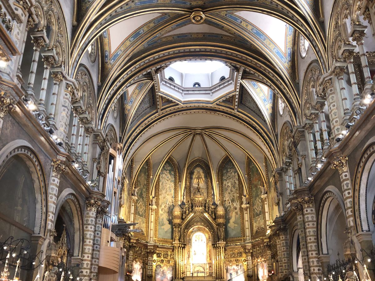サクラダファミリアの発想のベースのなったモンセラットの岩山の情景と現代アートも取り入れデザインしている修道院の建築物。
