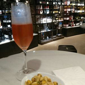 いよいよカバとタパスのテイスティングです。 カバはびんの底3cmくらいに入った物を2杯につぎわけ、タパスはというとミックスナッツでした。