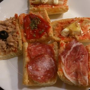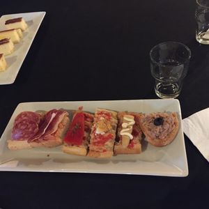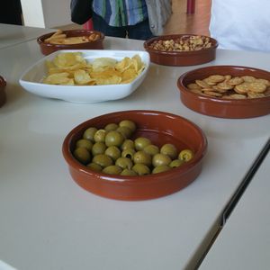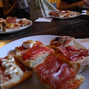 Solで集合したあと、町の解説、その後ウォーキング開始。テイストの違うバル4件回りました。それぞれでドリンク一杯+料理1〜4品いただいてお腹いっぱい。飲みながらお店、料理の解説やスペインの話全般、楽しくおしゃべりしましたよ。歩きながら危なそうな道も注意があり、お店だけ紹介(中に入って見学や、名刺もらったり)も多々あって、翌日以降自力で廻るのに役立ちました。