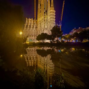 サグラダファミリアの夜景も美しかったです。雨上がりで、池に映った逆さサグラダがきれいでした。