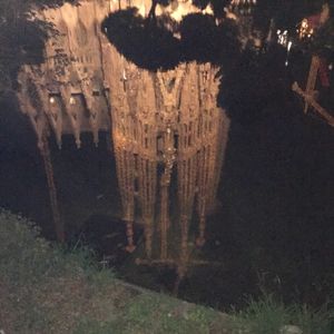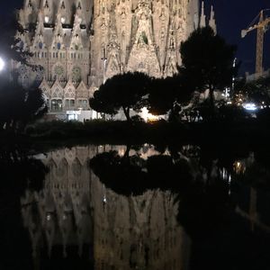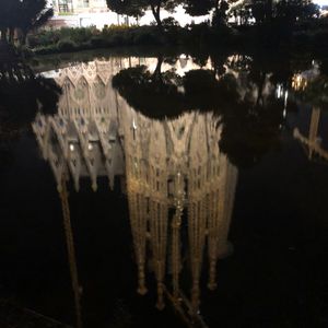 夜のサグラダ・ファミリア教会は、隣の公園の池に映るライトアップ像がくっきり見えて感動しました。