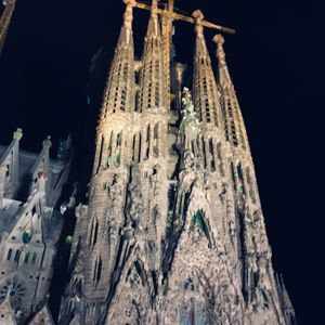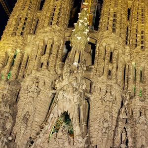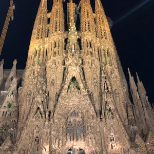 圧巻です。お昼に見るサグラダファミリアとまた違う姿で感動ものです。