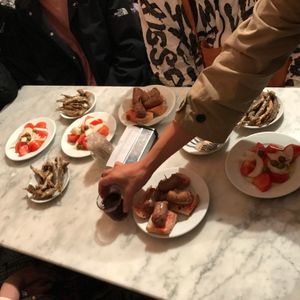 姉妹二人で参加。ガイドさんに路地裏にあるバルに連れていってもらいました。三軒それぞれに雰囲気が違い、大勢のツアーでは食べられないタパスがとても美味しくお話も弾んで楽しかったです!池に映ったライトアップされたサグラダファミリアは必見ですよ\(^o^)/