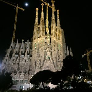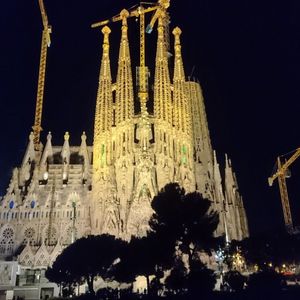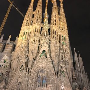 食事後に訪れたライトアップされたサグラダファミリアは幻想的で、昼間とは全く異なる魅力を放っていました。