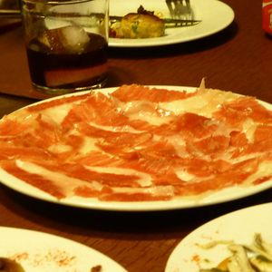 3軒目のバルはイベリコ生ハムも、お勧めの赤ワインもすごくおいしかったけれど、それは日本人のガイドさんとおしゃべりしながらだったからかも。ざっくばらんで何でも話せる感じのYさんは、マドリードでの夜ツアーでガイドしていただた日本人による現地ツアー会社と同じ会社の方で、我々夫婦がバルセロナでも夜ツアーに参加することを事前に連絡を受けておられたとか。Yさんにはこの夜ツアー以外でも親切にしていただき、大変お世話になりました。もしまたスペインに行くときには、ぜひ指名してガイドお願いしたいと思います。