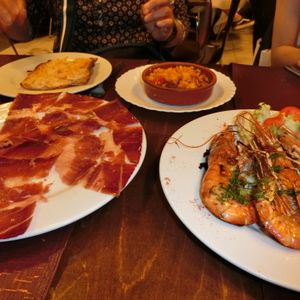 1軒目ではピンチョス、二軒目ではイベリコ豚、エビの揚げ物なのみんなでシェア、3軒目では念願の生ハムを食べることができました☆ガイドさんがとっても物知りで親切でたくさんお話しできてたのしかったです!