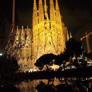 サグラダ・ファミリアの夜景、逆さサグラダ・ファミリアも綺麗に見ることができ、昼間とは全く違う印象を持つことができました。